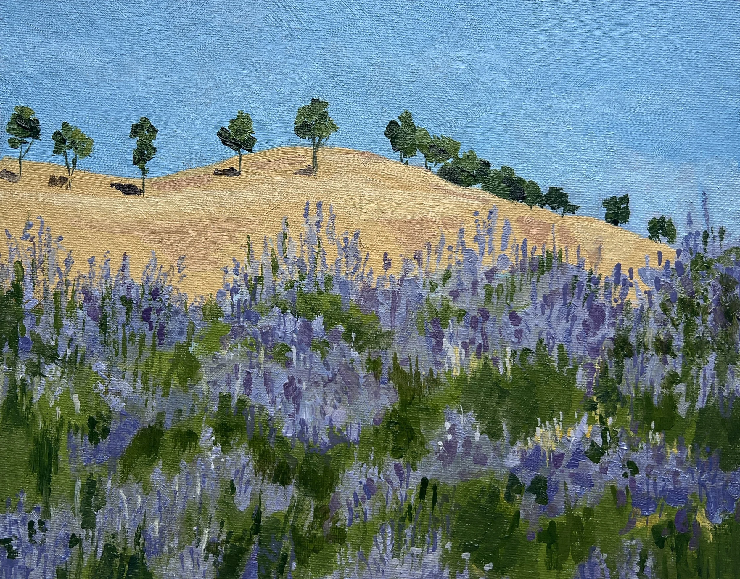 Diablo with poppies 12 x 24 oil on canvas.